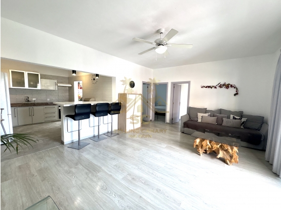 El apartamento, reformado, se encuentra en un edificio sin ascensor y cuenta con dos amplios y luminosos dormitorios, un baño moderno con ducha, amplio salón y cocina estilo americano en un único gran ambiente luminoso, un balcón que da hacia la calle y una enorme azotea privativa.